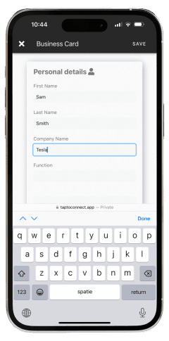 Met TapToConnect heb je slechts één visitekaartje nodig, omdat het een digitaal visitekaartje is dat in realtime kan worden bijgewerkt.