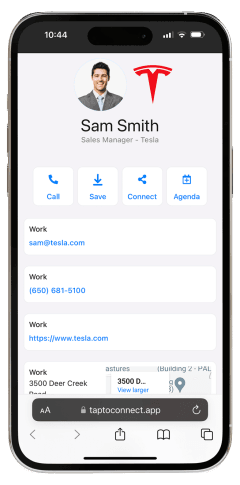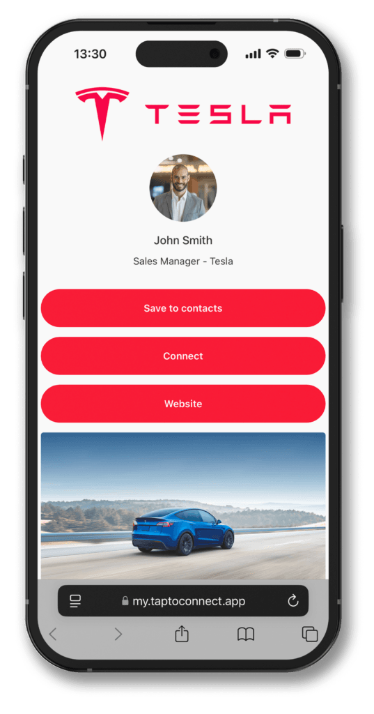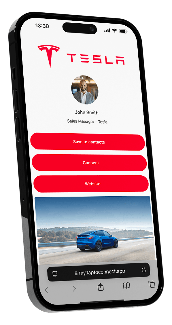 Maak een blijvende eerste indruk. Deel direct jouw contactgegevens, verzamel leads en koppel met jouw CRM-systeem – allemaal met TapToConnect™