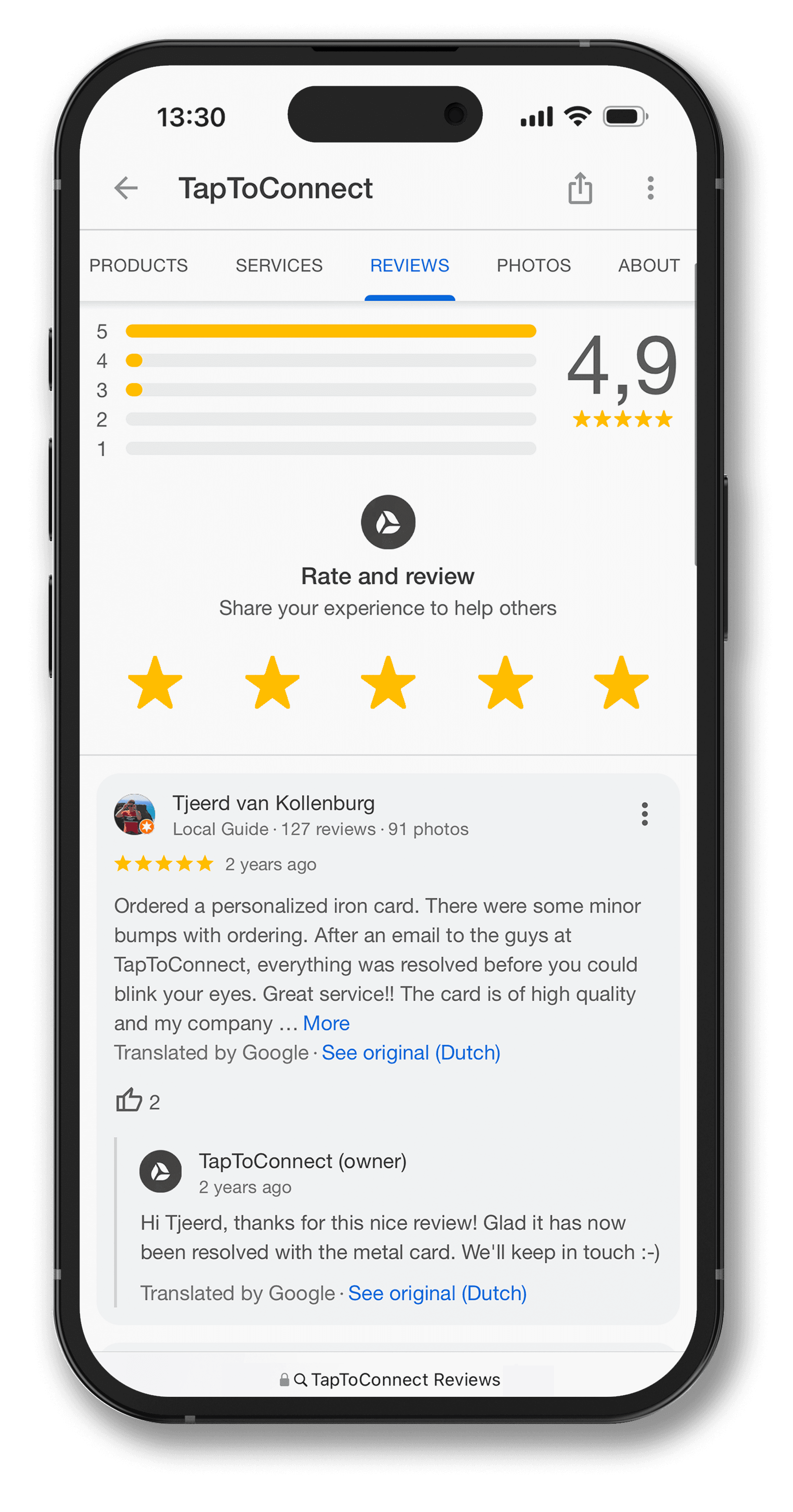 Onze reviewkaart biedt een moderne, milieuvriendelijke manier om meer reviews te krijgen voor je bedrijf